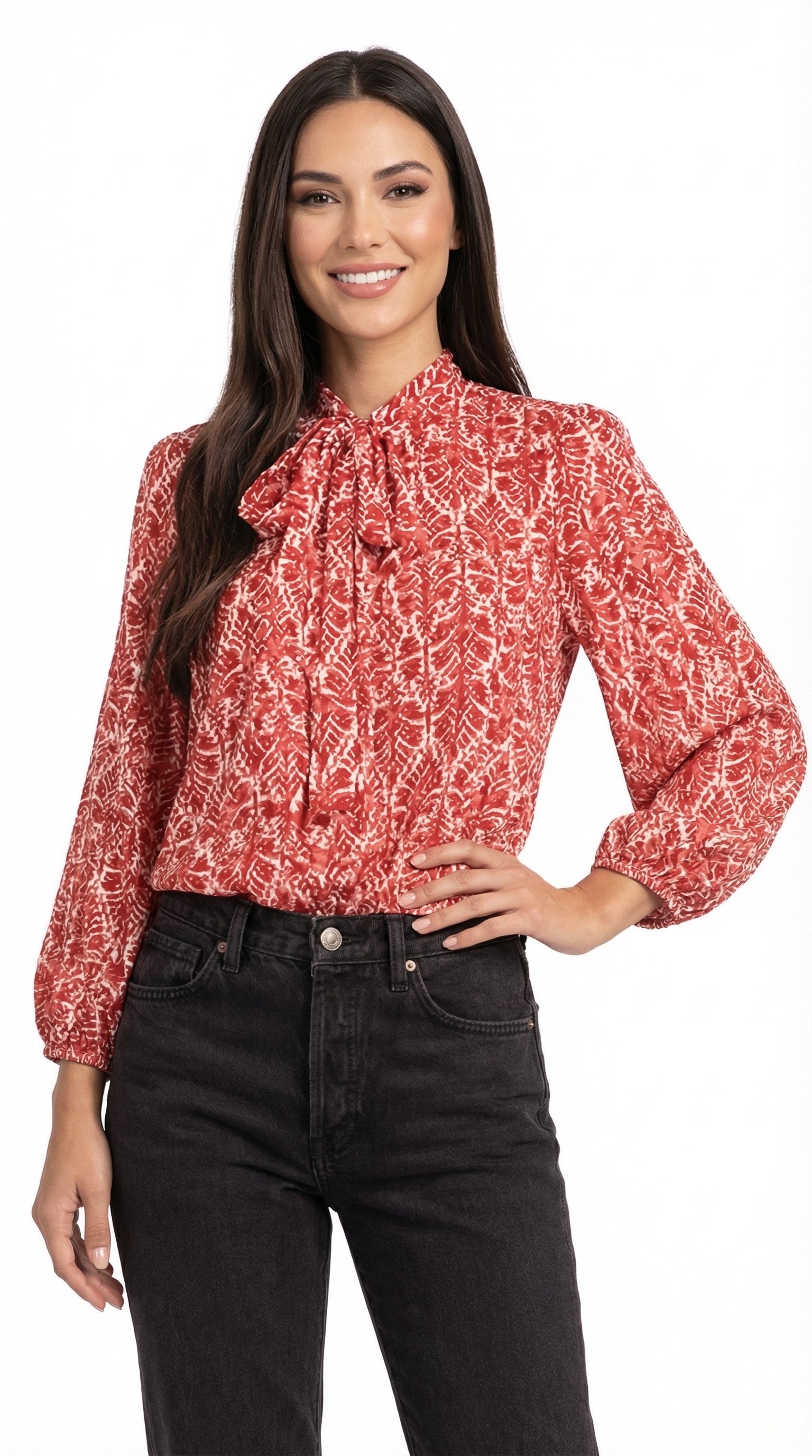 • Cuello con lazada integrada para un acabado elegante.